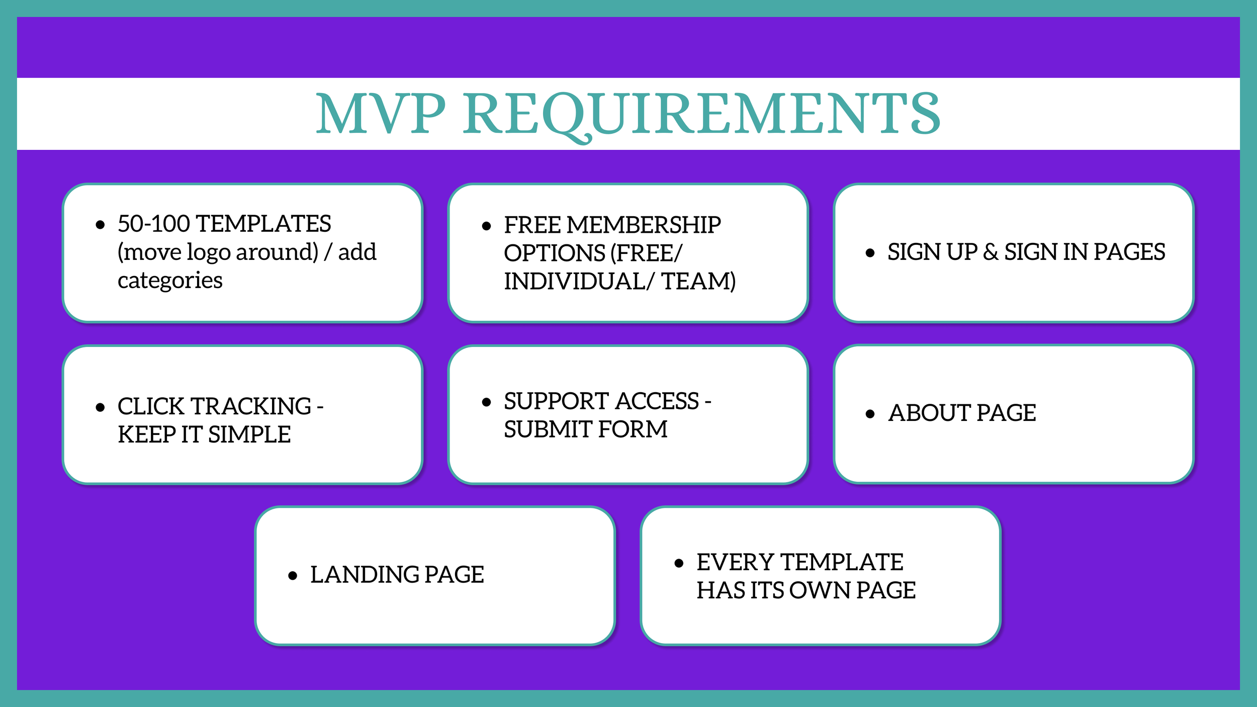 We made a sitemap to represent all of the pages that needed to be designed that were directly related to the MVP.
